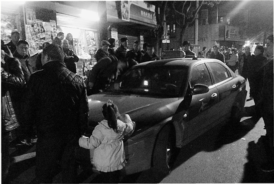 老乡们围住了李师傅开的车。