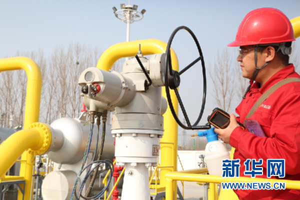 图为,中石油北京天然气管道有限公司北京输气处西沙屯分输站,值班工人李东进行四小时一次的常规巡检。新华网 孙广见摄。