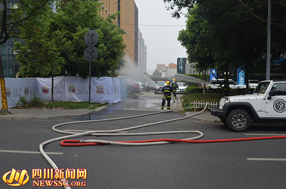 同时,两名战士在现场110的配合下对周围进行警戒,防止无关人员进入。随后派两名战士在附近寻找水源,找到水源后,立即组织串联供水,确保水源充足,等待燃气公司抢修人员到场。